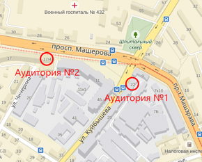 рядом со зданием "Белой вежи", крыльцо со стороны проспекта, ориентироваться на вывеску "Гемотест", 5й этаж, ауд. 504